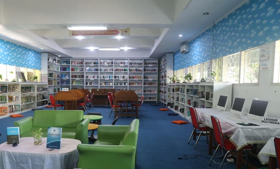 Ruang Baca Perpustakaan Ki Hajar Dewantara, SMA Negeri 70 Jakarta. Ruang Koleksi dan Buku Paket terpisah dalam satu ruang tersendiri.